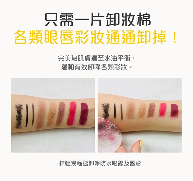 1. 温和卸妆不刺激 — 特别为眼唇娇嫩部位设计,轻轻一敷即可溶解浓妆。