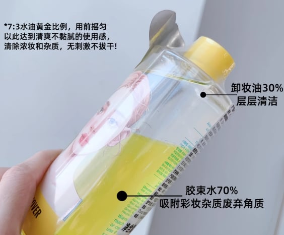 2. 黄金水油比例 7:3 — 油层清洁、水平衡保湿,使用前轻摇即可激活清爽卸妆力。