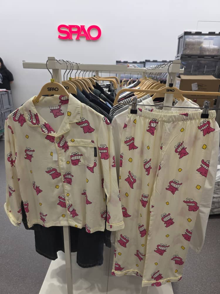 This pajama set features a playful cartoon print, perfect for adding a touch of fun to your sleepwear collection. The set includes a long-sleeved, button-down top and matching pants, both made from a soft, lightweight fabric to ensure a comfortable night's sleep. The top has a notched collar, button-up front, and a small chest pocket, while the pants have an elastic waistband for a flexible fit. The light-colored fabric is adorned with a repeating pattern of cartoon characters in pink, adding a whimsical and cheerful aesthetic. This pajama set is ideal for anyone who loves unique and comfortable sleepwear. Key Features: * Soft, lightweight fabric for ultimate comfort * Playful cartoon print for a fun and unique look * Long-sleeved, button-down top with a notched collar * Matching pants with an elastic waistband for a flexible fit * Small chest pocket on the top for added convenience * Durable stitching for long-lasting wear * Easy to care for fabric * Perfect for lounging around the house or a comfortable night's sleep * Suitable for all ages who enjoy fun and comfortable sleepwear