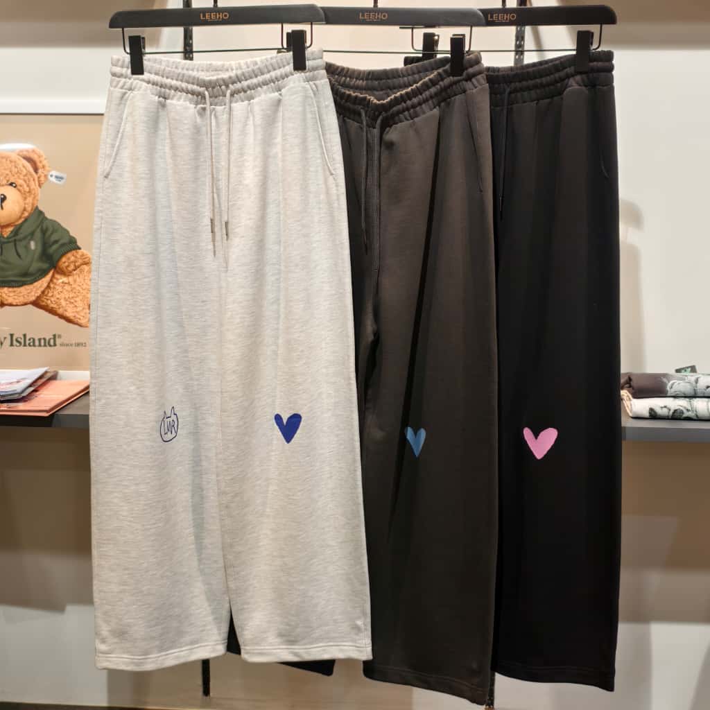 These casual lounge pants are perfect for relaxing at home or running errands. The pants are made from a soft, comfortable fabric and feature a relaxed fit. They have an elastic waistband with a drawstring for a customized fit. The pants also have two side pockets for storing your essentials. The unique heart print adds a touch of personality to these comfortable pants. These pants are available in three colors: light gray, dark gray, and black. The light gray pants have a dark blue heart print, the dark gray pants have a light blue heart print, and the black pants have a pink heart print. These pants are perfect for anyone who wants to be comfortable and stylish at the same time. They are also a great gift for friends and family. These pants are ideal for lounging at home, running errands, or traveling. They are also a great option for casual outings with friends. The relaxed fit and soft fabric make them comfortable to wear all day long. Key features and benefits: - Soft and comfortable fabric - Relaxed fit - Elastic waistband with drawstring - Two side pockets - Unique heart print - Available in three colors - Perfect for lounging, running errands, or traveling - Great gift for friends and family