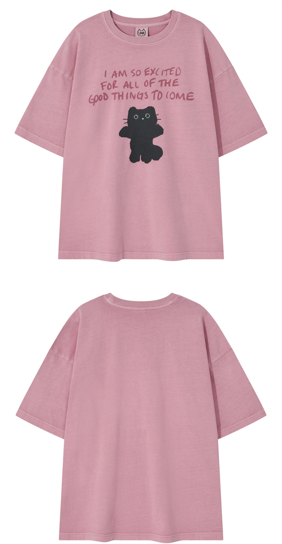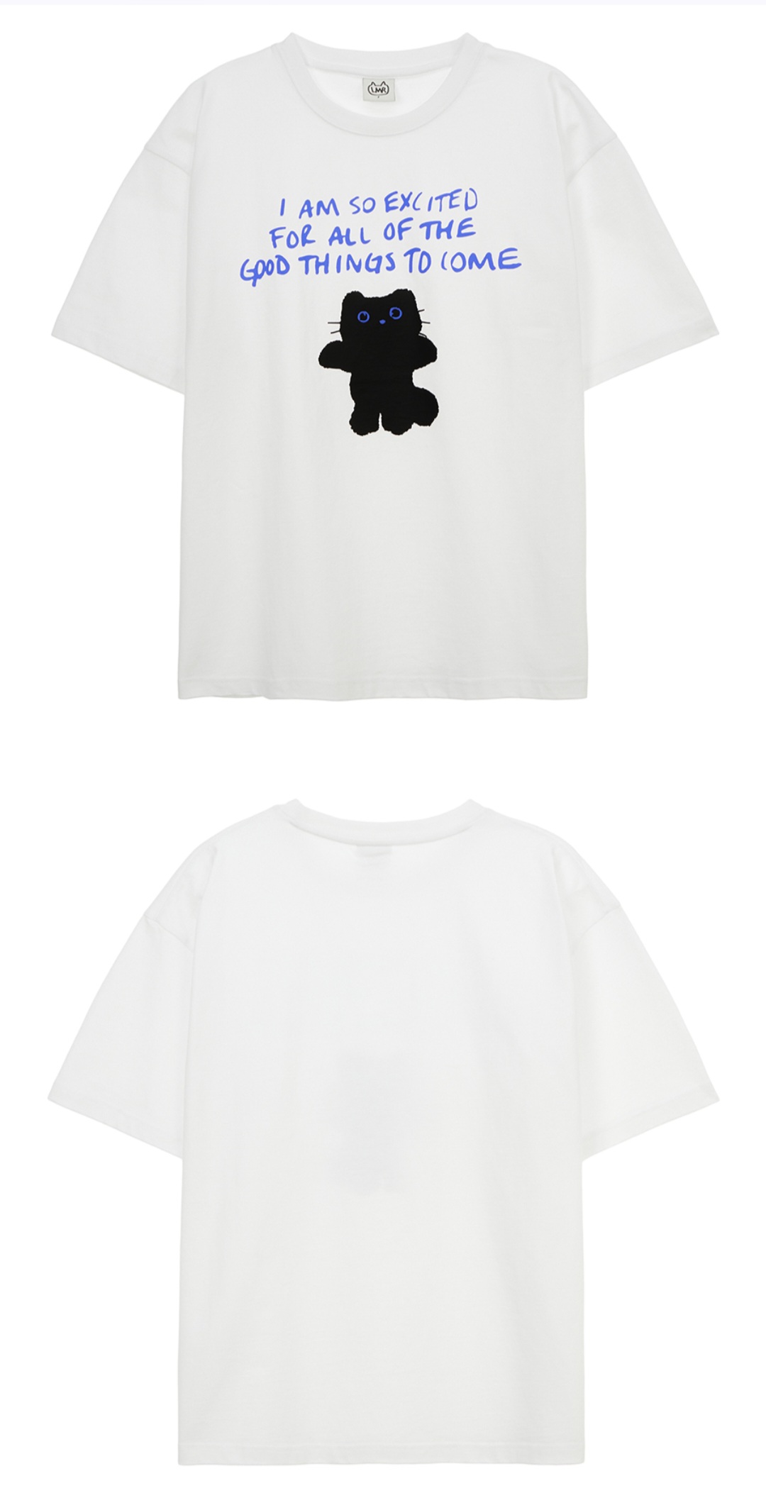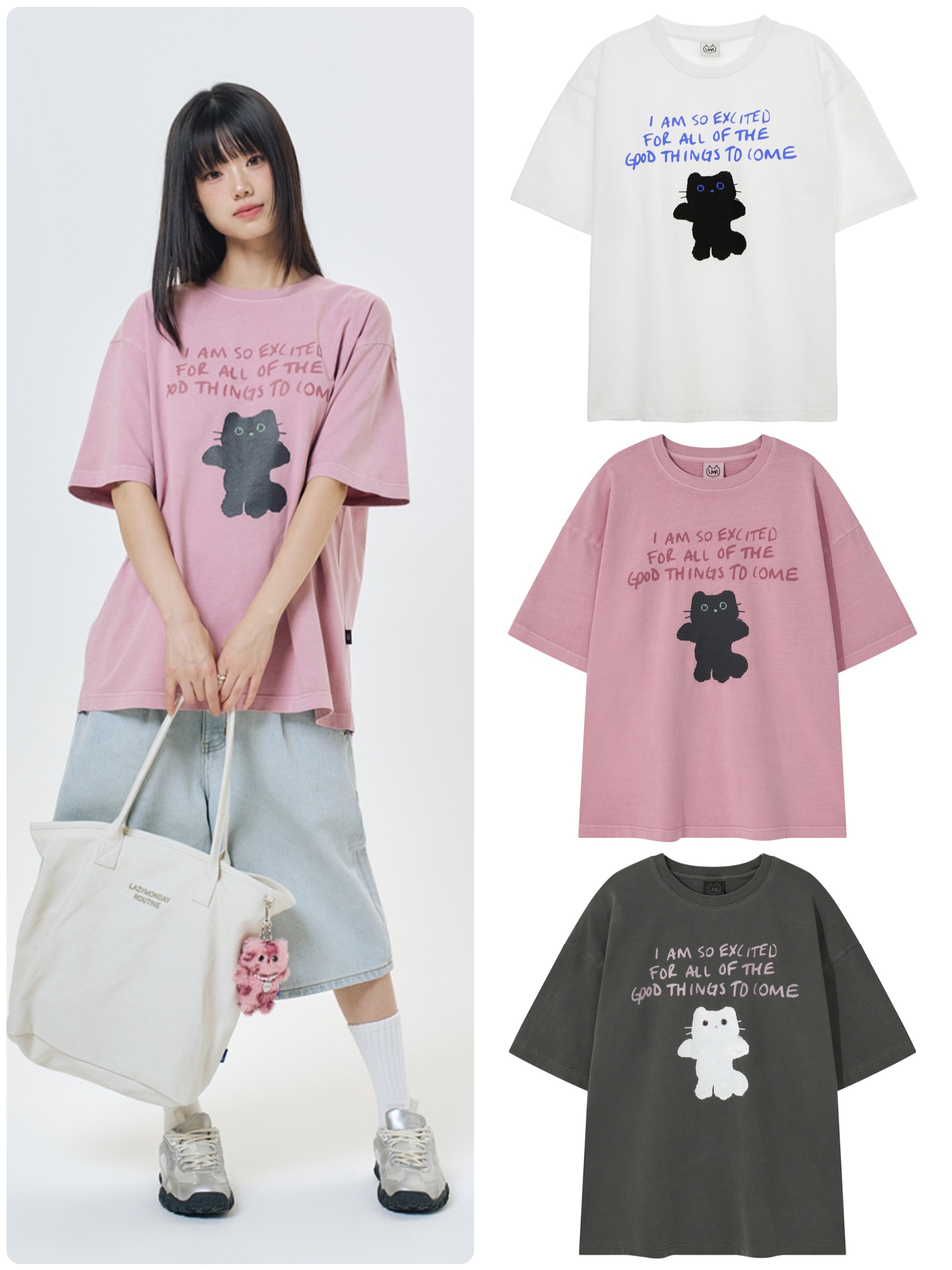 These stylish t-shirts feature unique graphic prints and are perfect for adding a touch of personality to your wardrobe. The shirts are displayed hanging on a rack, showcasing three different color options: white, pink, and gray. Each shirt has a short-sleeve design and a comfortable crew neck. The white shirt has the text "I AM SO EXCITED FOR ALL OF THE GOOD THINGS TO COME" in blue font, accompanied by a graphic of a black cat. The pink and gray shirts feature the text "EXCITED OF THE S TO COME" in pink font, along with a graphic of a white bear. These shirts are ideal for casual wear and can be easily paired with jeans, shorts, or skirts. The relaxed fit ensures comfort, making them suitable for everyday activities. The unique designs make these t-shirts a standout piece in any wardrobe. These shirts are perfect for anyone looking to express their individuality through fashion. The high-quality print ensures that the designs remain vibrant even after multiple washes. Key Features: - Available in white, pink, and gray - Unique graphic prints - Comfortable crew neck - Short-sleeve design - Relaxed fit - High-quality print - Ideal for casual wear - Suitable for expressing individuality - Easy to pair with various outfits