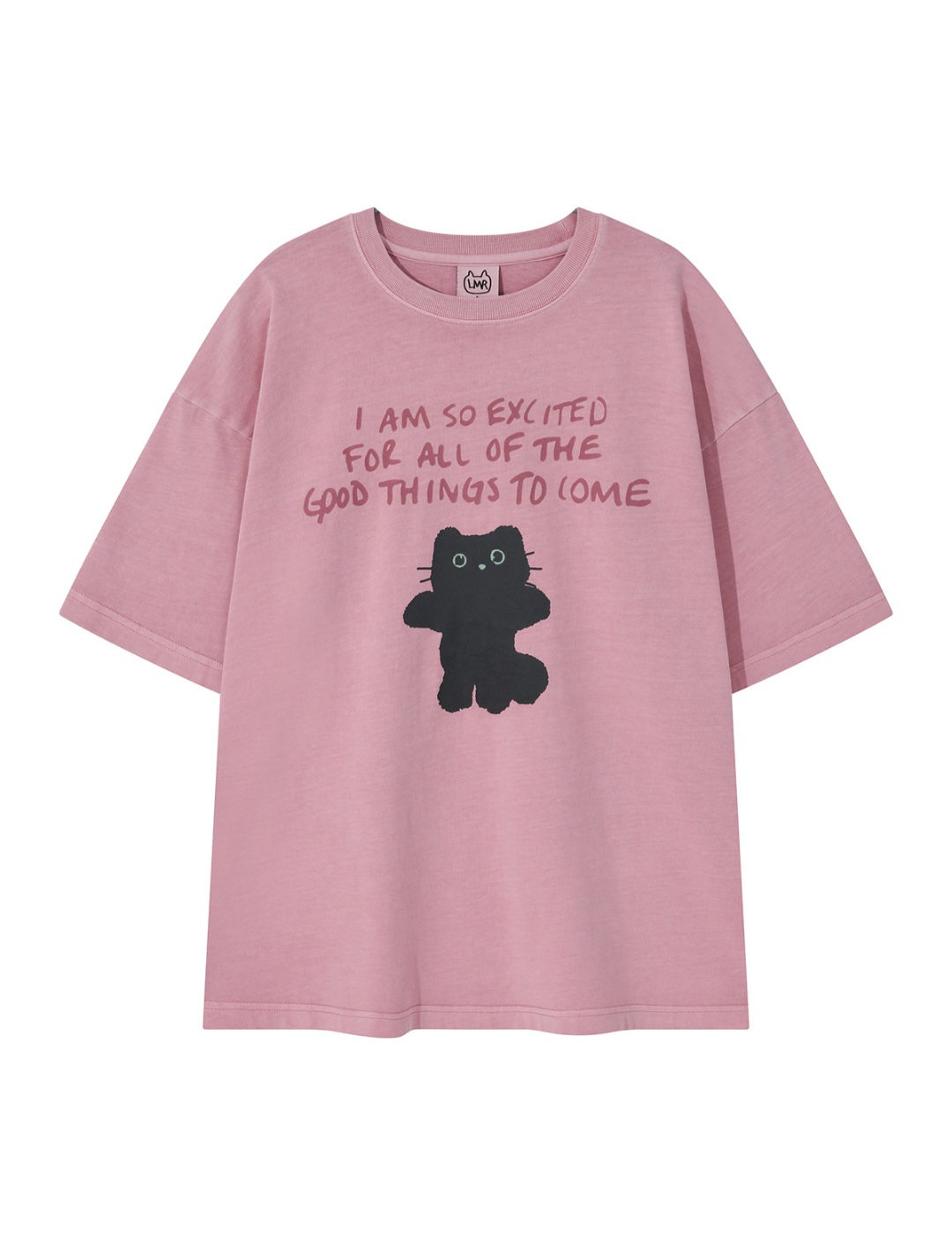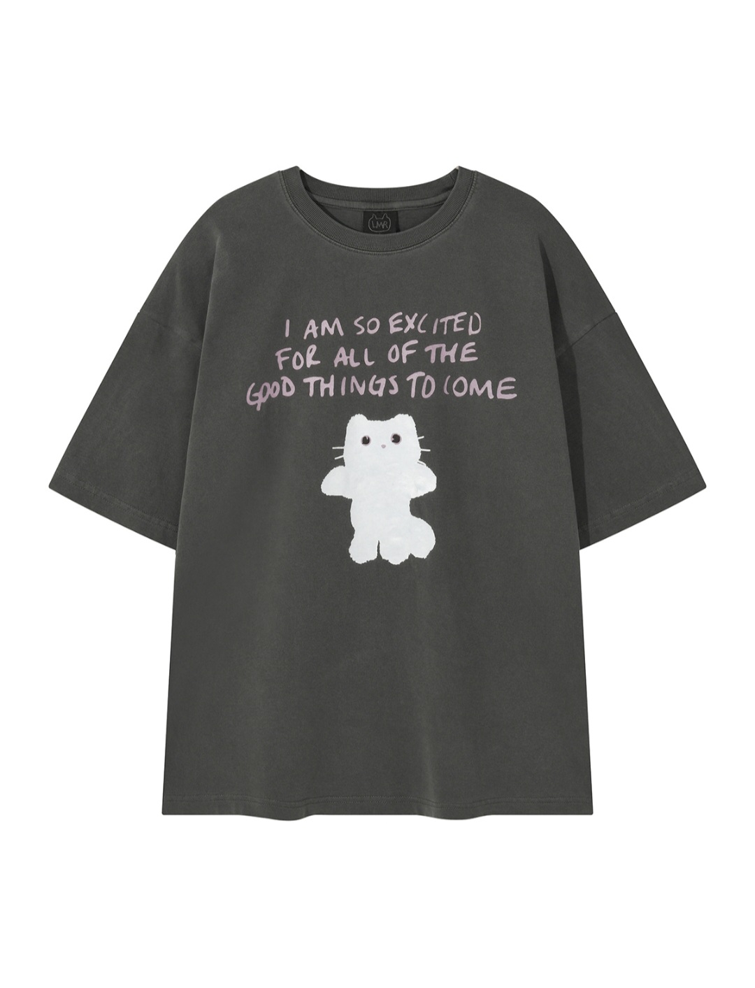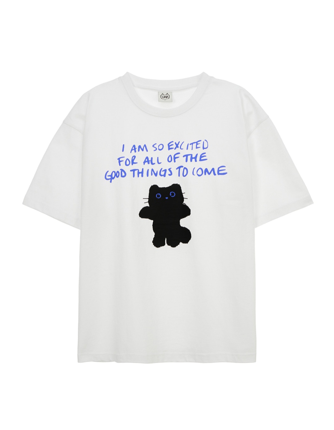 These stylish t-shirts feature unique graphic prints and are perfect for adding a touch of personality to your wardrobe. The shirts are displayed hanging on a rack, showcasing three different color options: white, pink, and gray. Each shirt has a short-sleeve design and a comfortable crew neck. The white shirt has the text "I AM SO EXCITED FOR ALL OF THE GOOD THINGS TO COME" in blue font, accompanied by a graphic of a black cat. The pink and gray shirts feature the text "EXCITED OF THE S TO COME" in pink font, along with a graphic of a white bear. These shirts are ideal for casual wear and can be easily paired with jeans, shorts, or skirts. The relaxed fit ensures comfort, making them suitable for everyday activities. The unique designs make these t-shirts a standout piece in any wardrobe. These shirts are perfect for anyone looking to express their individuality through fashion. The high-quality print ensures that the designs remain vibrant even after multiple washes. Key Features: - Available in white, pink, and gray - Unique graphic prints - Comfortable crew neck - Short-sleeve design - Relaxed fit - High-quality print - Ideal for casual wear - Suitable for expressing individuality - Easy to pair with various outfits
