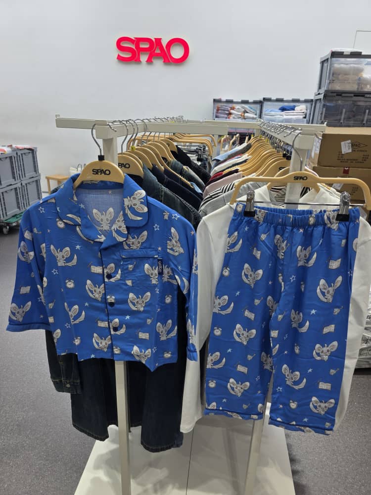 This SPAO pajama set features a playful koala print on a vibrant blue background. The set includes a button-down, short-sleeved top and matching long pants, both adorned with a charming pattern of koalas, stars, books, and clocks. The top has a classic collar and a small chest pocket, while the pants have an elastic waistband for a comfortable fit. The fabric appears lightweight and breathable, perfect for a cozy night's sleep. The set is displayed on a hanger, showcasing its coordinated design and appealing aesthetic. This pajama set is ideal for those who appreciate fun and quirky sleepwear. It would make a great gift for teens, young adults, or anyone who loves koalas and unique prints. The set is suitable for year-round wear, providing comfort and style for a relaxing night in. The SPAO logo is visible in the background, indicating the brand's quality and style. This pajama set is a delightful addition to any sleepwear collection, offering both comfort and a touch of whimsy. Key features and benefits: * Coordinated pajama set with matching top and pants * Playful koala print with stars, books, and clocks * Lightweight and breathable fabric for comfortable sleep * Button-down top with classic collar and chest pocket * Pants with elastic waistband for a secure fit * Suitable for year-round wear * Ideal for teens, young adults, and koala lovers * SPAO brand quality and style