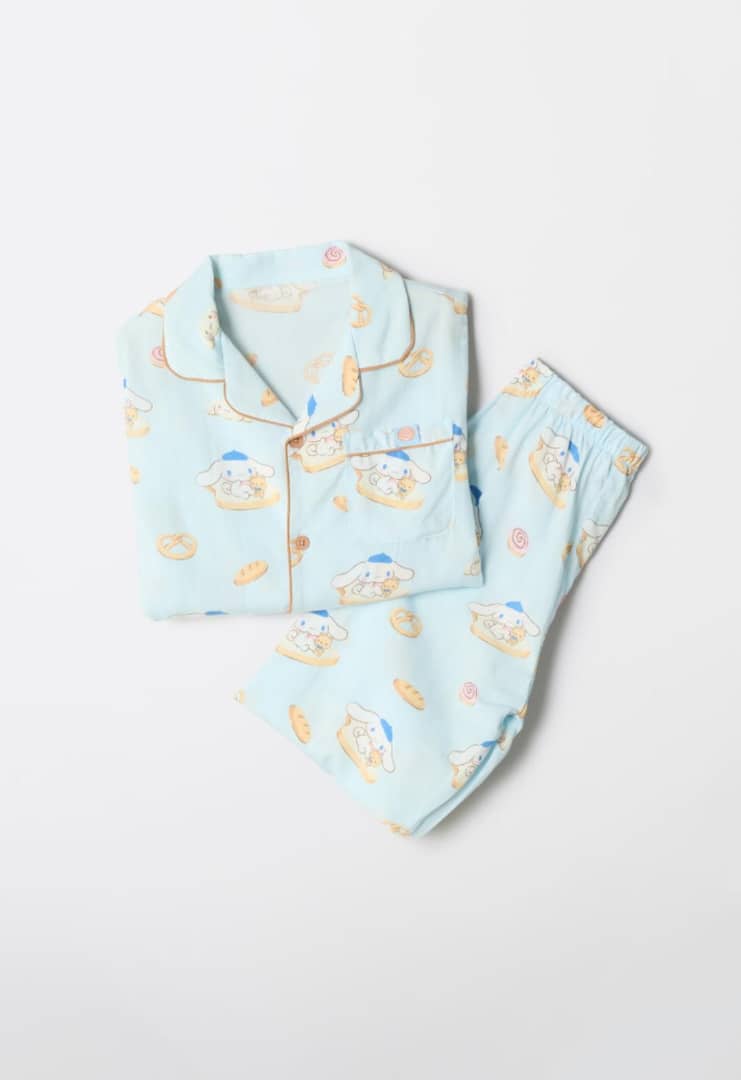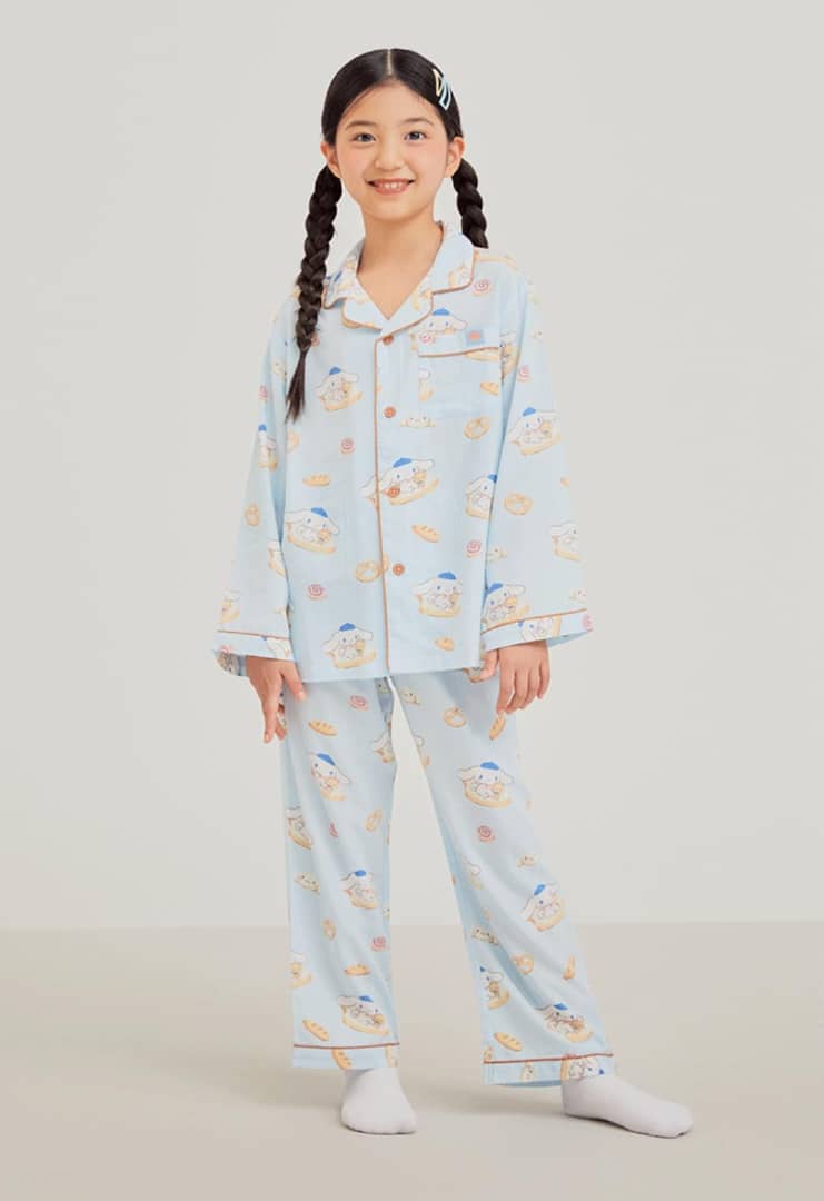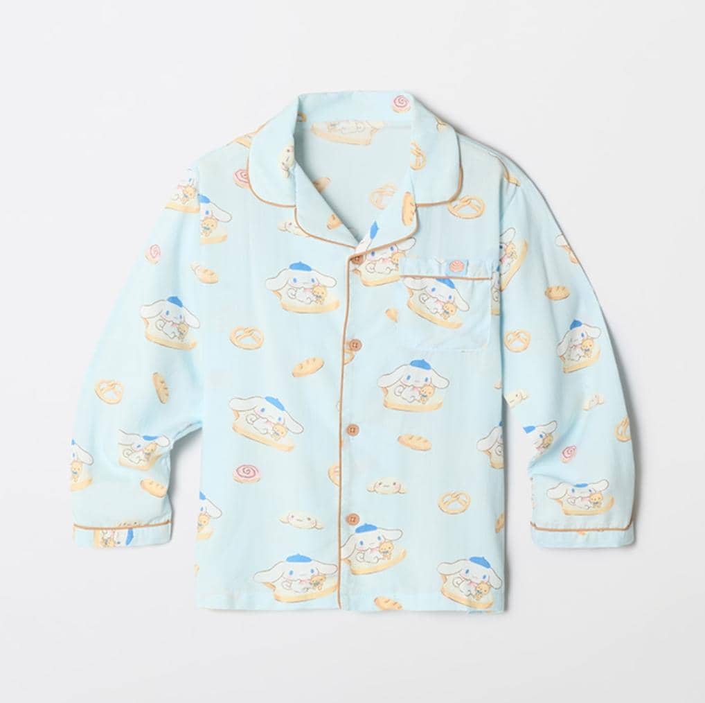 Drift off to dreamland in style with this adorable Cinnamoroll pajama set. This charming sleepwear features a light blue background adorned with delightful Cinnamoroll and baked goods patterns, perfect for adding a touch of whimsy to your nighttime routine. The set includes a button-down long-sleeve top and matching long pants, both designed for ultimate comfort and relaxation. Made from soft, breathable fabric, this pajama set ensures a cozy and restful night's sleep. The playful design and comfortable fit make it an ideal choice for Cinnamoroll fans of all ages. Whether you're lounging around the house or settling in for the night, this pajama set will keep you feeling snug and stylish. The button-down top allows for easy wear, while the elastic waistband on the pants provides a secure and comfortable fit. This pajama set is not only perfect for personal use but also makes a thoughtful gift for friends and family who adore Cinnamoroll. Embrace the cuteness and comfort of this Cinnamoroll pajama set and make bedtime a delightful experience. Key Features: * Charming Cinnamoroll and baked goods pattern * Soft, breathable fabric for ultimate comfort * Button-down long-sleeve top for easy wear * Matching long pants with elastic waistband * Light blue background for a soothing aesthetic * Perfect for lounging and sleeping * Ideal gift for Cinnamoroll fans