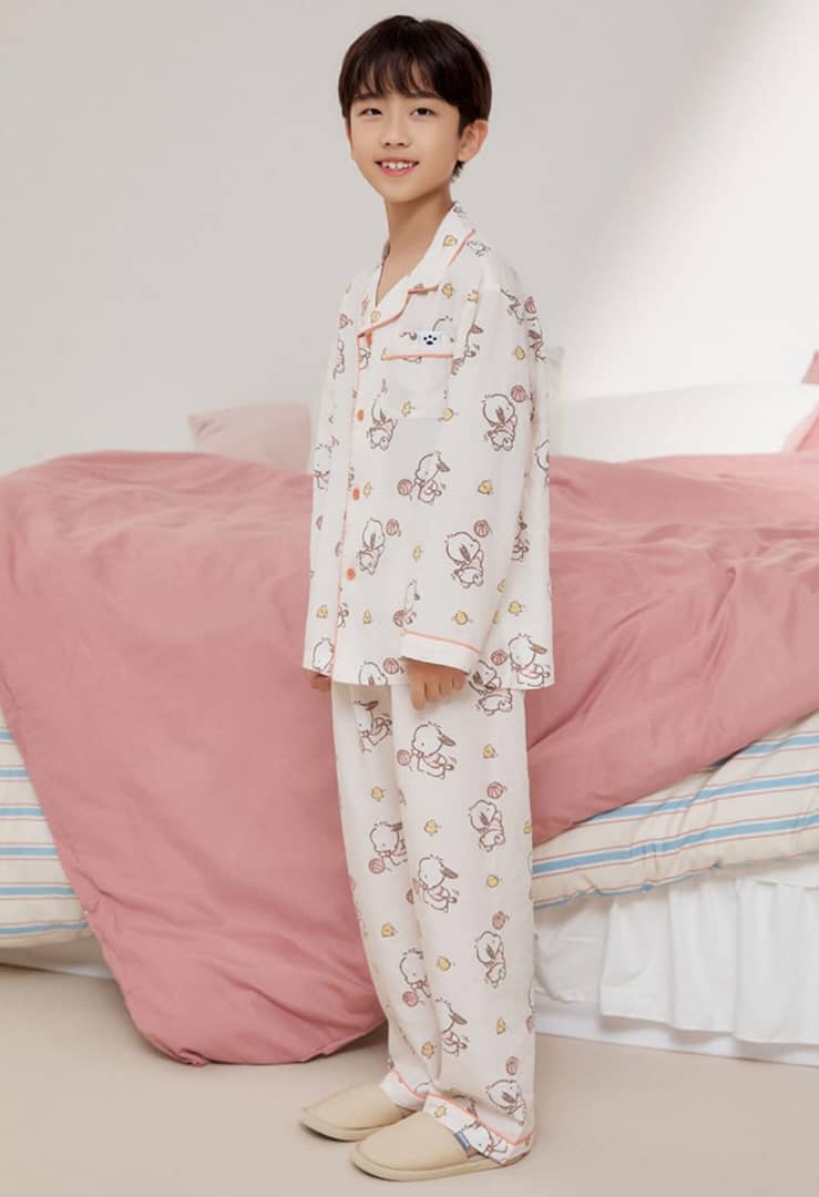 SPK06 SPAO: [Kids] (Sanrio Characters) Long-sleeved Pajamas (Beige)