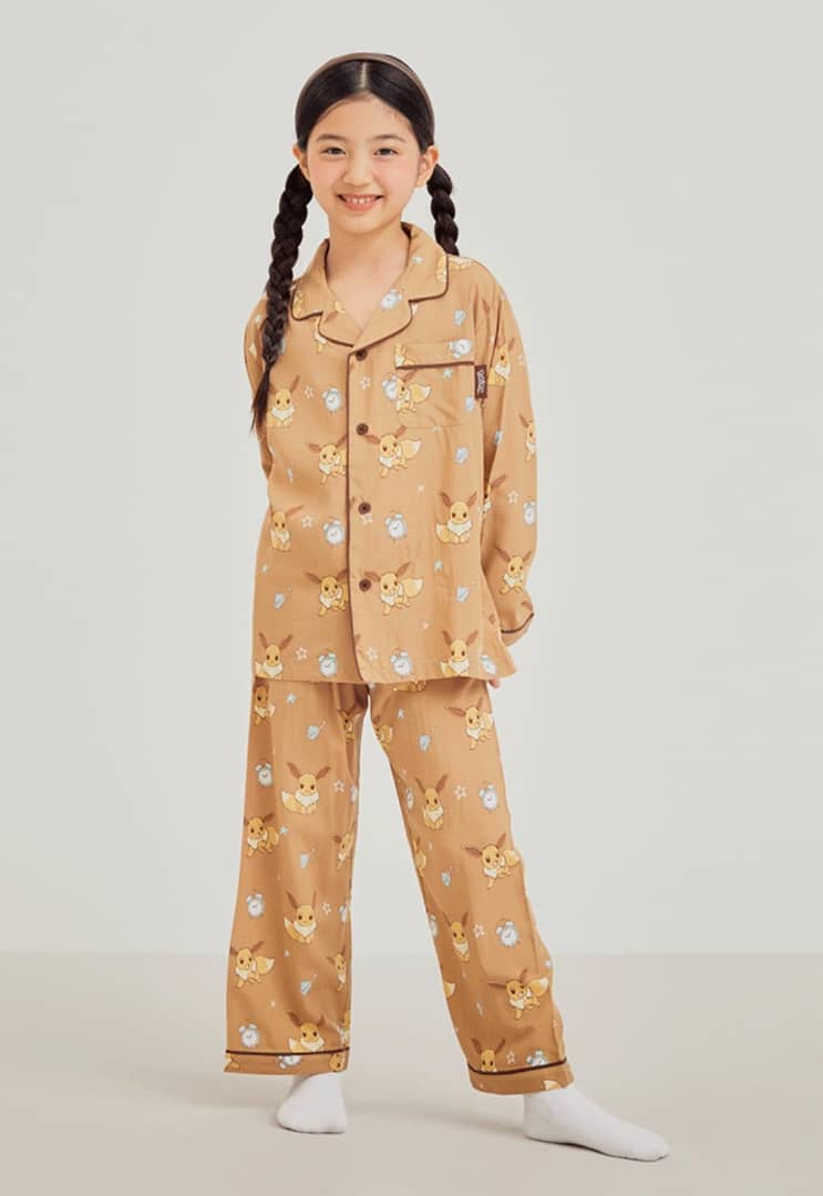 SPK08 SPAO: [Kids] (Pokemon) Long-Sleeved Pajamas (Brown)