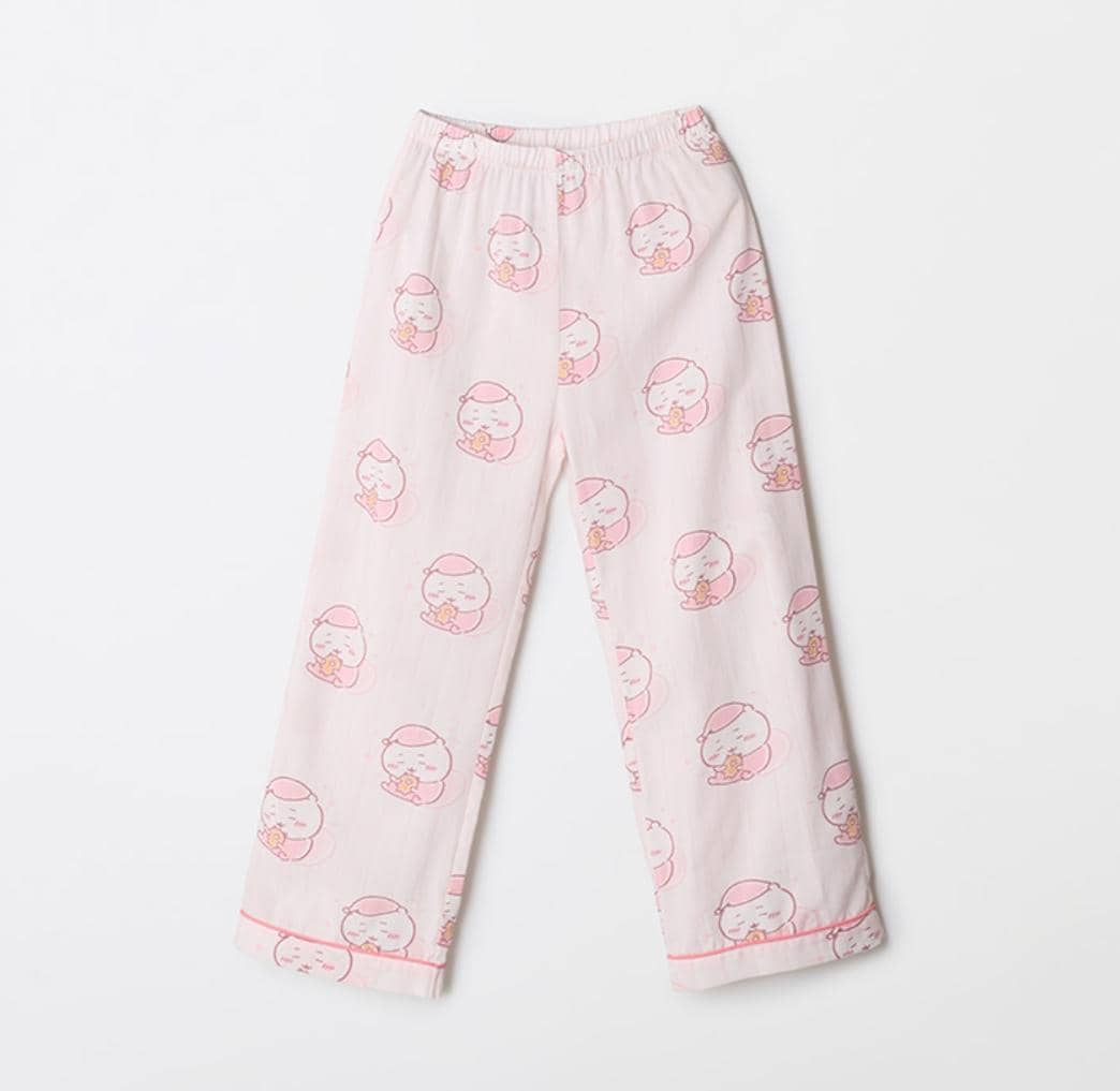 This adorable pajama set features a charming cartoon print, perfect for adding a touch of whimsy to your bedtime routine. The set includes a long-sleeved, button-down top and matching pants, both made from a lightweight, comfortable fabric that ensures a cozy night's sleep. The top has a classic notched collar and a chest pocket, while the pants have an elastic waistband for a flexible fit. The light color palette and delicate cartoon design make this pajama set a delightful addition to any sleepwear collection. Key Features: * Matching pajama set with a cute cartoon print. * Long-sleeved, button-down top with a notched collar and chest pocket. * Comfortable pants with an elastic waistband. * Lightweight and breathable fabric for a comfortable night's sleep. * Delicate color palette and charming design. * Suitable for lounging around the house or a restful night's sleep. This pajama set is ideal for anyone who loves cute and comfortable sleepwear. It's perfect for those who enjoy relaxing at home and want to add a touch of fun to their bedtime attire. The lightweight fabric makes it suitable for year-round wear, ensuring a cozy and stylish sleep experience.