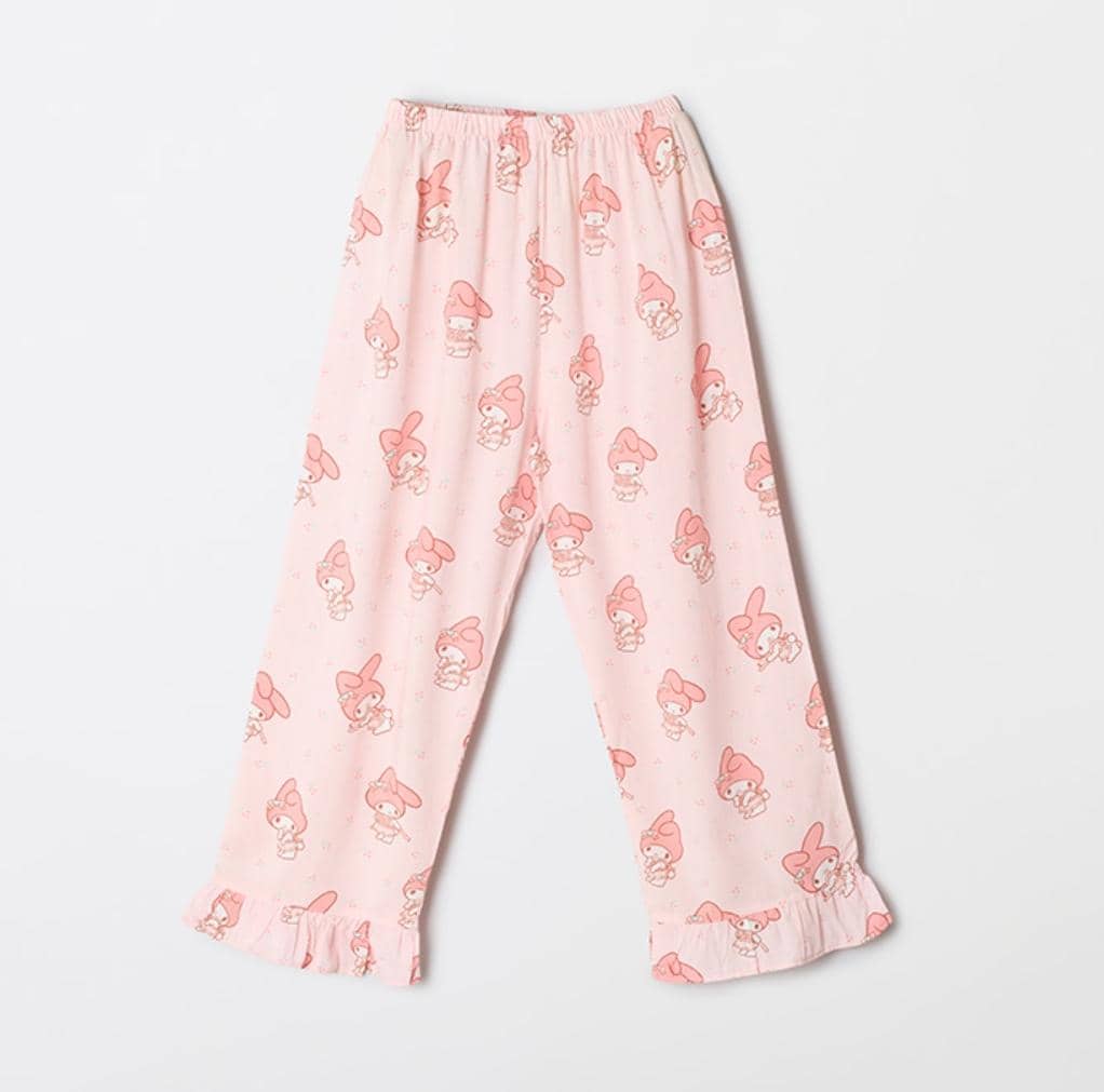 Indulge in the ultimate comfort and cuteness with this adorable SPAO My Melody Pajama Set. Perfect for lounging at home or enjoying a restful night's sleep, this pajama set combines whimsical design with cozy materials. The set includes a long-sleeved button-up top and matching pants, both adorned with a charming My Melody print. The light pink color palette adds a touch of sweetness, making it a delightful addition to your sleepwear collection. The top features a classic collar and button-down design, allowing for easy wear and a customizable fit. The long sleeves provide warmth, while the lightweight fabric ensures breathability. The matching pants have an elastic waistband for a comfortable and secure fit, and the relaxed silhouette allows for unrestricted movement. Both the top and pants are finished with delicate ruffle trim, adding a touch of femininity to the overall design. This pajama set is perfect for My Melody fans of all ages, as well as anyone who appreciates cute and comfortable loungewear. Whether you're treating yourself or searching for a thoughtful gift, this SPAO My Melody Pajama Set is sure to bring joy and relaxation. Key Features and Benefits: * Charming My Melody print for a touch of kawaii style * Soft and breathable fabric for ultimate comfort * Long-sleeved button-up top for easy wear and customizable fit * Matching pants with elastic waistband for a secure and comfortable fit * Delicate ruffle trim for added femininity * Perfect for lounging, sleeping, or gifting * Lightweight material ensures breathability * Durable construction for long-lasting wear