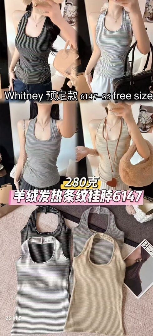 This striped halter top is a stylish and comfortable addition to any wardrobe. Made from a soft knit fabric, this tank top features a classic halter neckline and a flattering, form-fitting silhouette. The horizontal stripes add a touch of visual interest, making it a versatile piece that can be dressed up or down. Perfect for warm weather, this halter top can be worn on its own or layered under a jacket or cardigan for cooler days. Its lightweight and breathable fabric ensures all-day comfort, while the timeless design makes it a staple piece that you'll reach for again and again. Whether you're heading to the beach, meeting friends for lunch, or going out for a night on the town, this striped halter top is a perfect choice. Its simple yet chic design makes it easy to pair with jeans, shorts, skirts, or pants, allowing you to create a variety of stylish outfits. This halter top is ideal for: * Anyone looking for a comfortable and stylish top for warm weather. * Those who appreciate versatile pieces that can be dressed up or down. * Individuals seeking a classic and timeless addition to their wardrobe. Key Features: * Soft and comfortable knit fabric * Classic halter neckline * Flattering, form-fitting silhouette * Horizontal stripes for visual interest * Lightweight and breathable * Versatile design for various occasions